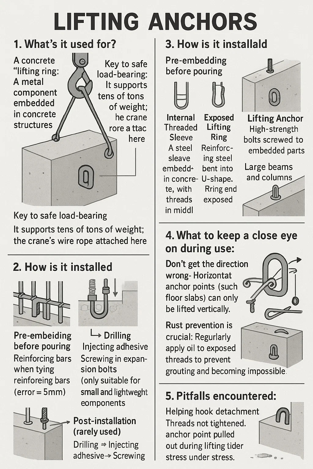 در اینجا توضیحی در مورد بلند کردن لنگرها ، به اصطلاحات رایج سایت ساخت و ساز تقسیم می شود: